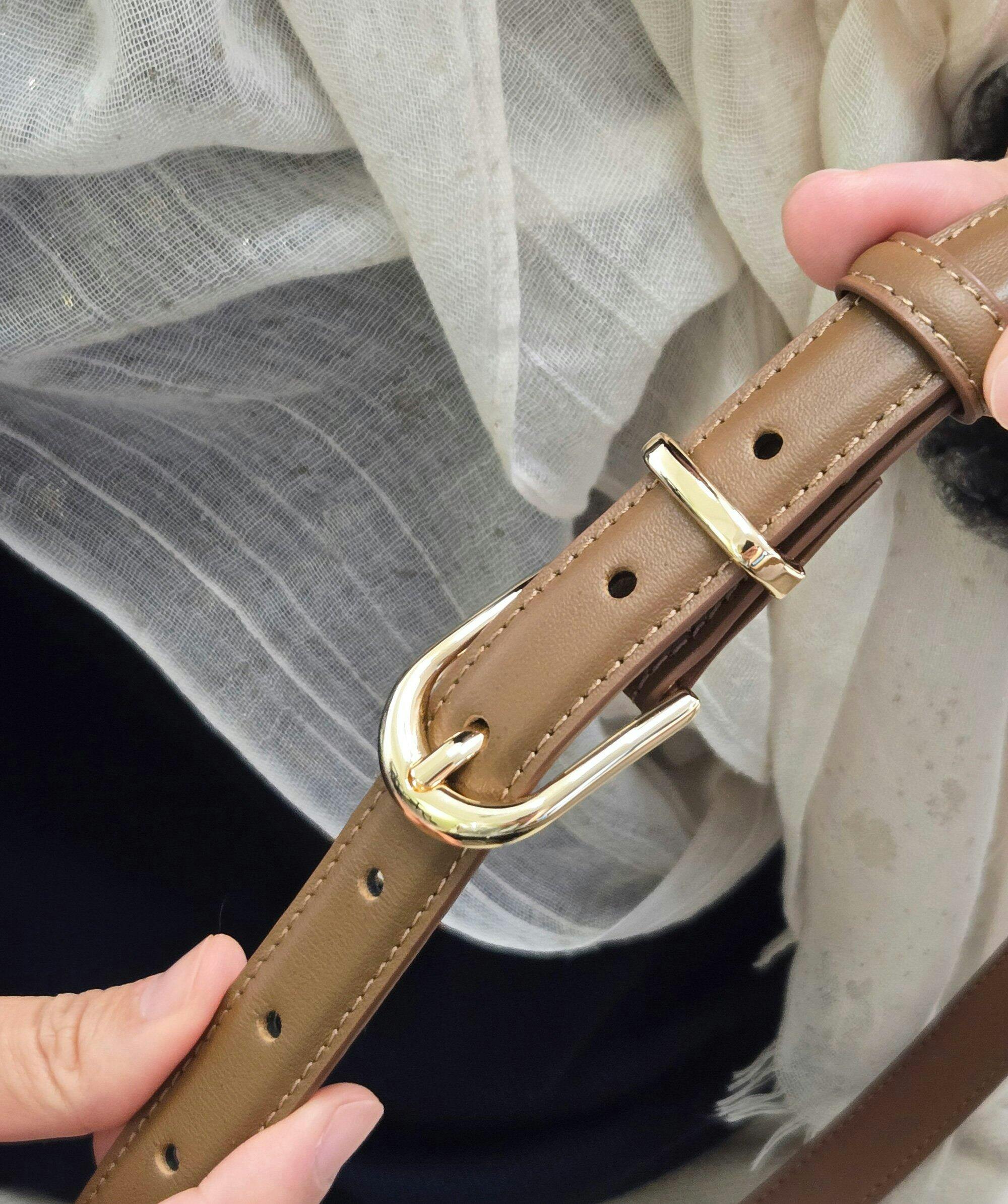 Crafted from durable top-grain cowhide leather with fine stitching, this classic belt offers a timeless look and adjustable fit for everyday comfort. The polished gold D-shaped buckle adds a graceful touch, making it a versatile accessory that elevates denim, dresses, and tailored outfits with understated elegance and modern charm.